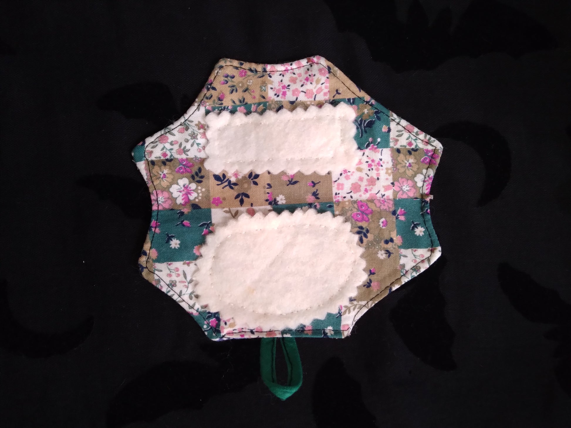 Made using scrap vintage cotton fabric, cotton felt and a metal button from I'm not sure where tbh.